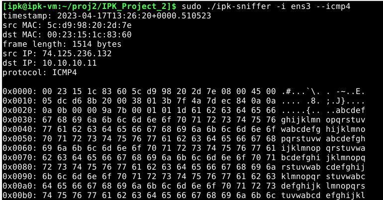 Jednoduchý síťový sniffer napsaný v C. Více informací v